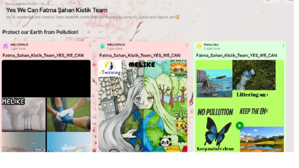 Öğrencilerin Kirlilik ile ilgili Posterlerini içeren bir Padlet oluşturduk.